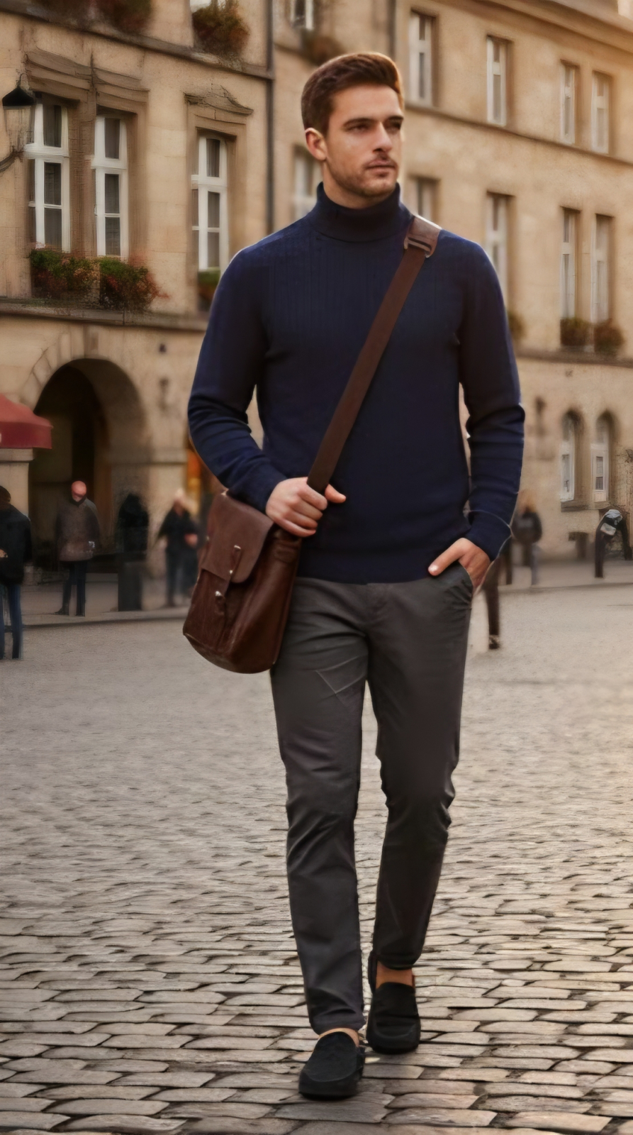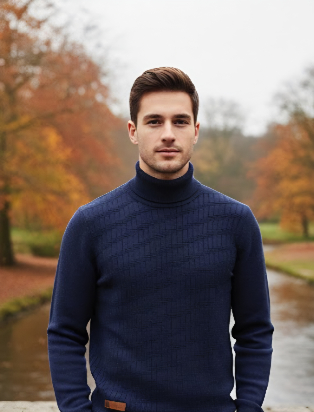 Redefinește-ți garderoba de toamnă-iarnă cu un element clasic, dar surprinzător prin detalii. Acest pulover bleumarin cu guler înalt (turtleneck) este piesa centrală ideală pentru bărbatul care apreciază eleganța discretă și confortul premium.