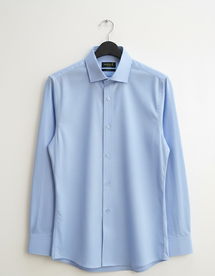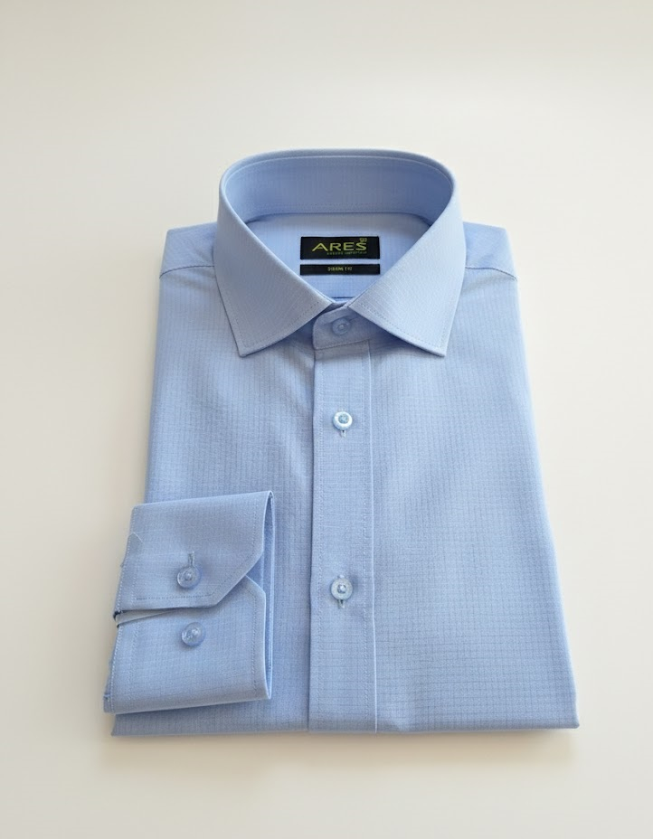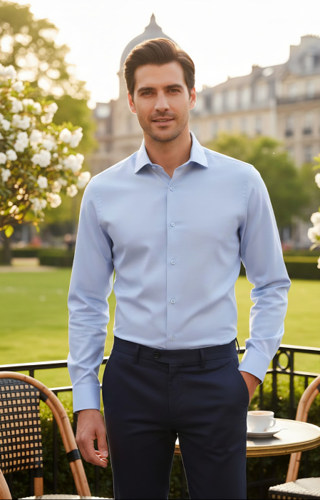 Datorită texturii sale fine și a culorii bleu versatile, această cămașă este un "camaleon" vestimentar.