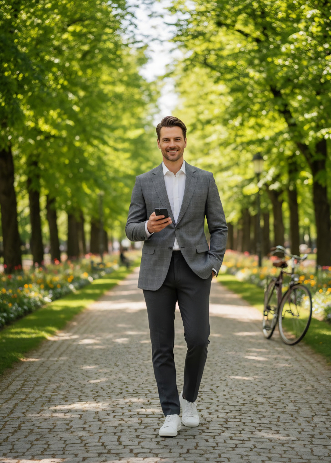 Smart-Casual : Combină-l cu o cămașă albă imaculată, pantaloni închiși la culoare și sneakers albi din piele pentru un look fresh, tineresc și extrem de confortabil.