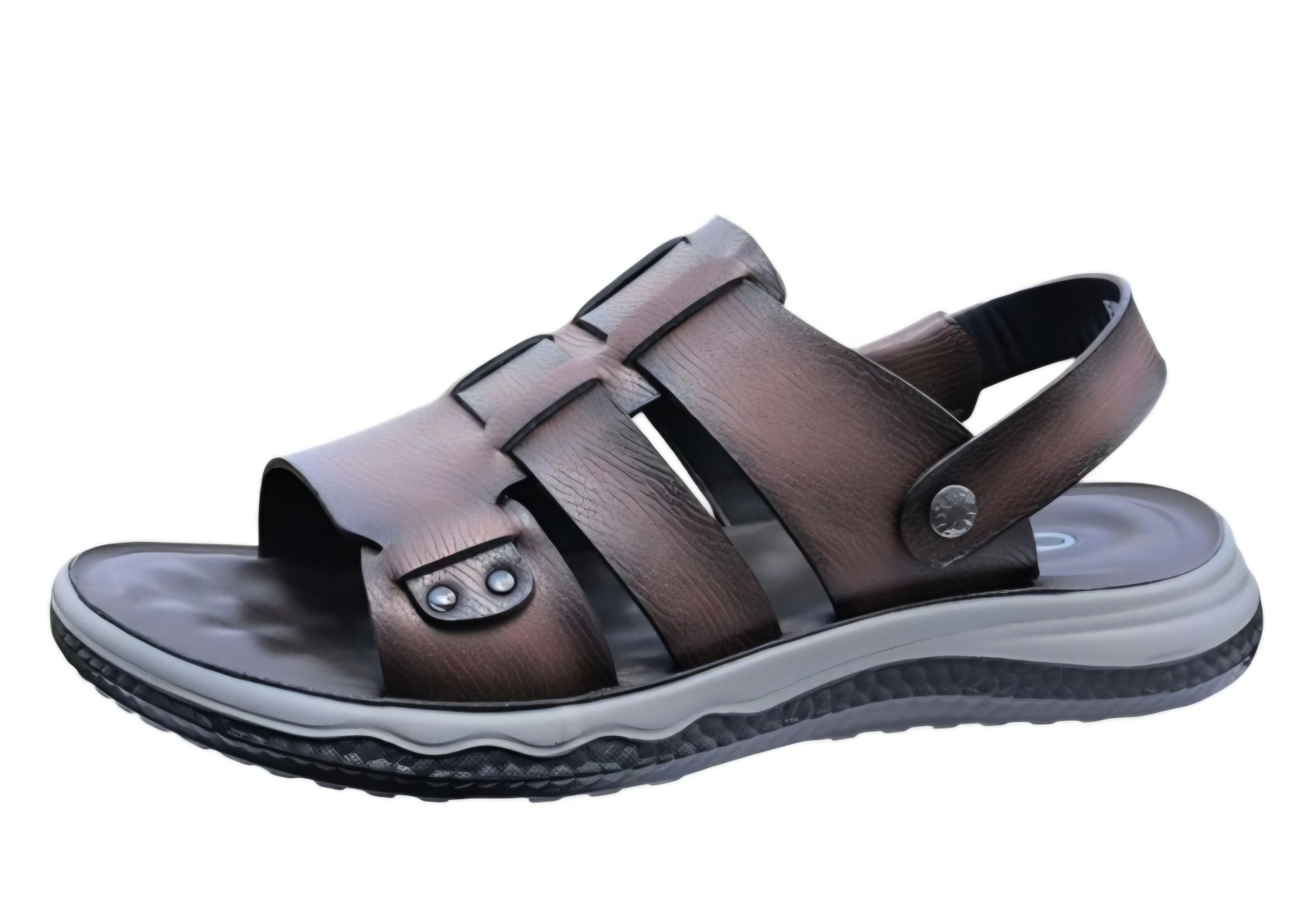 Aceste sandale reprezintă echilibrul perfect între stilul clasic și funcționalitatea modernă. Fabricate din piele naturală cu un finisaj deosebit, texturat, acest model este destinat bărbatului care apreciază calitatea materialelor și un design care nu se demodează. Nuanța de maro închis cu reflexii oferă o notă sofisticată, ușor de asortat la orice garderobă de vară.