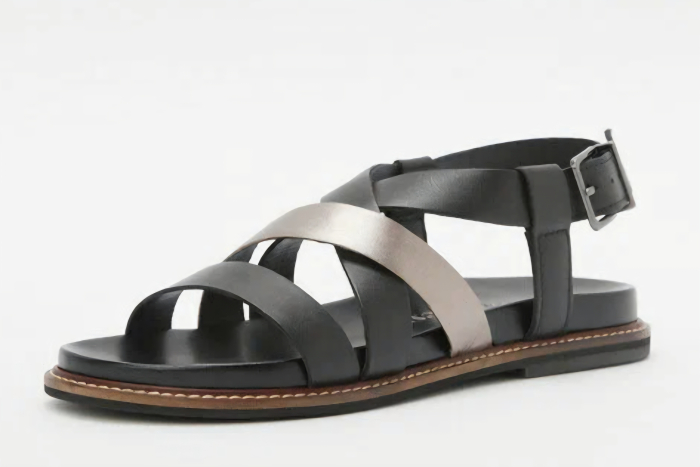 Design Atemporal: Dispunerea baretelor încrucișate nu doar că arată impecabil, dar asigură și o fixare optimă a piciorului.