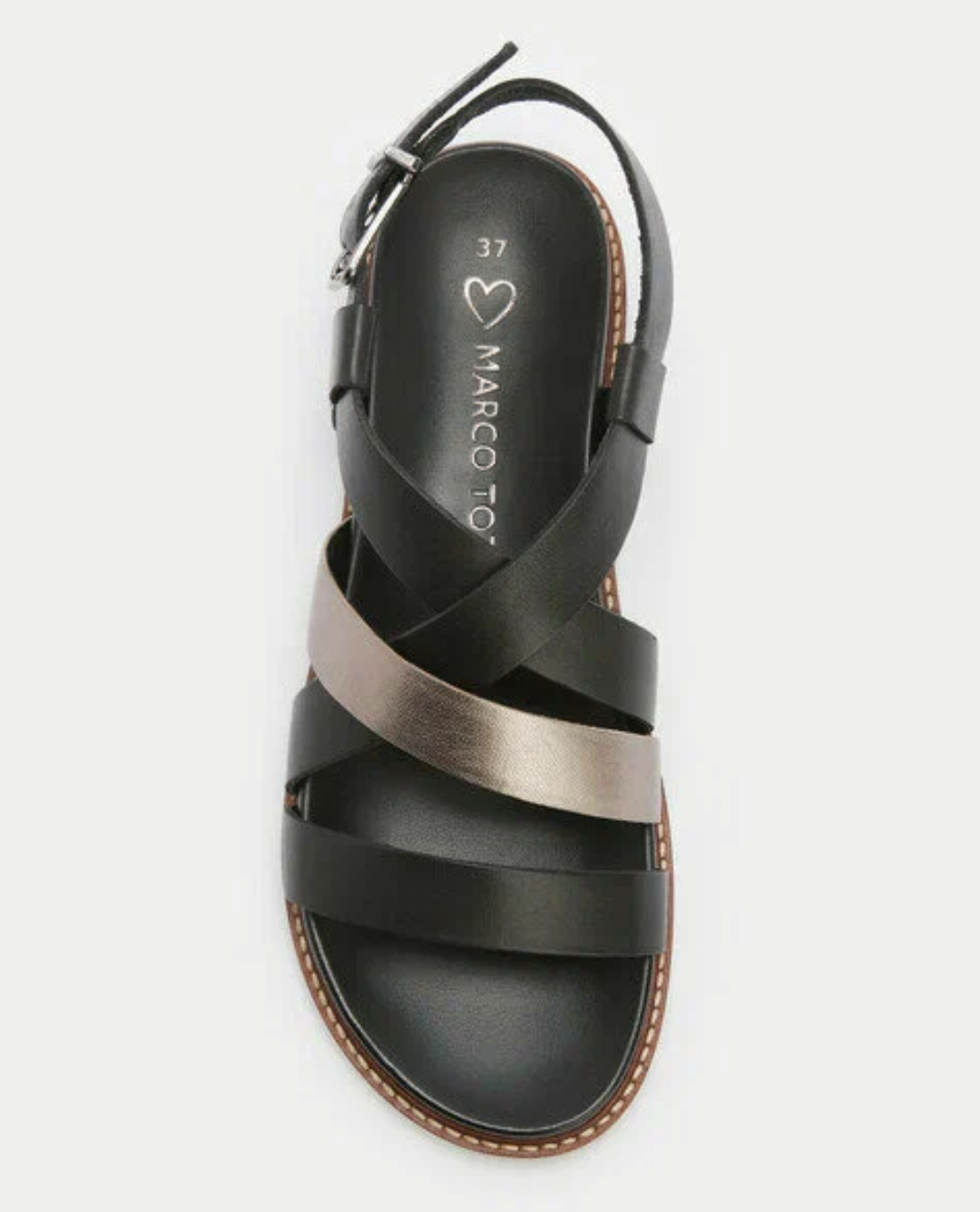 Redefinește eleganța cotidiană cu aceste sandale Marco Tozzi, un model care îmbină perfect estetica minimalistă cu detalii contemporane. Variantele pe negru sunt piese fundamentale în garderoba de vară, oferind un look curat și sofisticat, potrivit pentru orice moment al zilei.