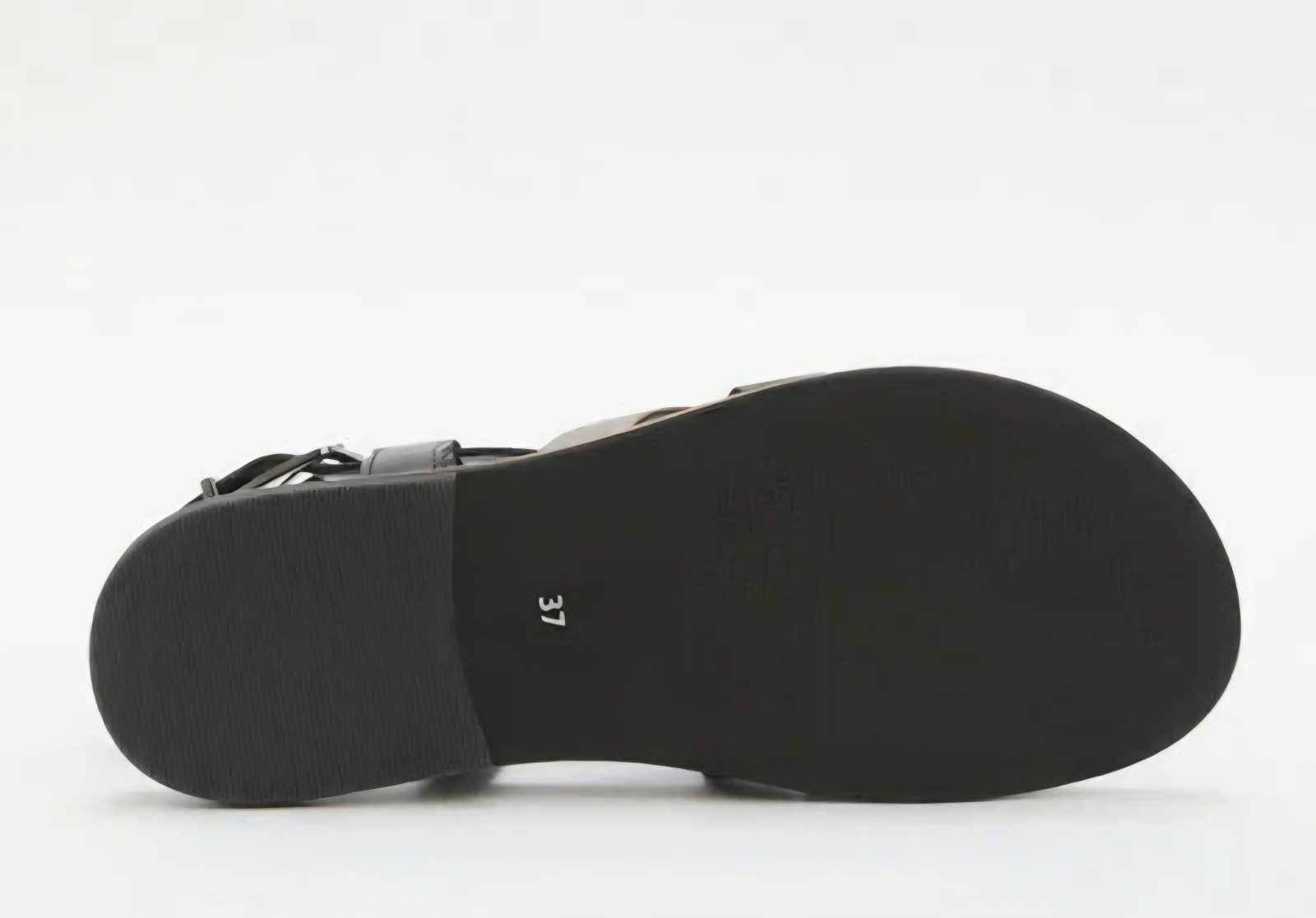 Mix de Texturi: Combinația dintre baretele negre mate și baretă argintie cu reflexii metalice adaugă profunzime designului, transformând o sanda simplă într-un accesoriu statement.