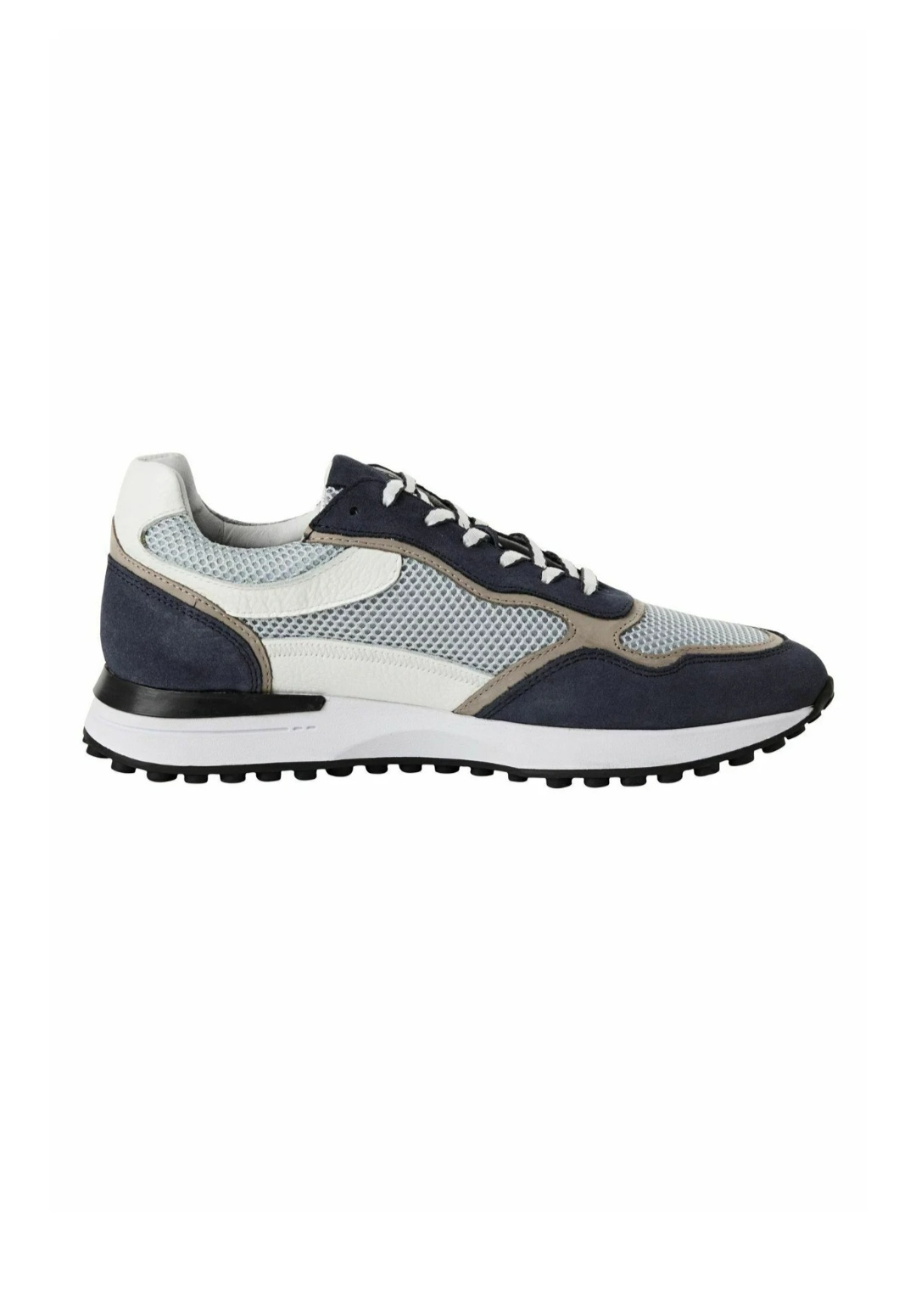 • Inserții din Piele Netedă: Accentele albe și bej din piele naturală adaugă structură pantofului și un contrast vizual elegant.