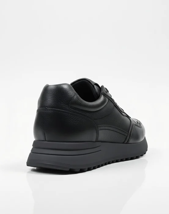 Redefinește-ți stilul urban cu o pereche de sneakers care emană rafinament prin simplitate. Acest model „All-Black” este piesa de bază ideală pentru bărbatul care caută un echilibru între confortul sportiv și estetica luxoasă a pielii naturale.